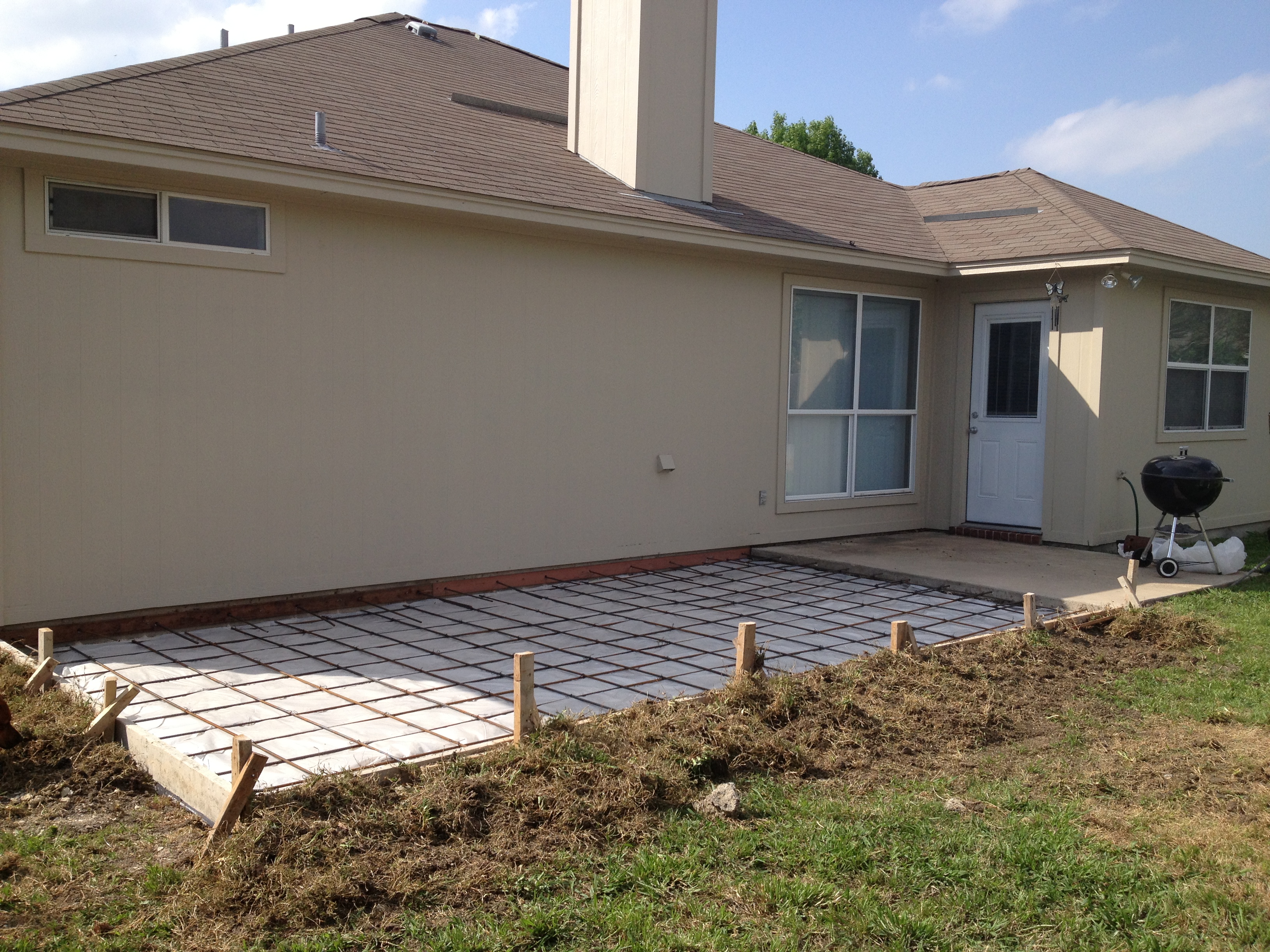The new patio provided so much more space! I don’t have any pictures of them putting the cover on. But we chose to not have it extend all the way- we left an open area on the end for the grill and fire pit.