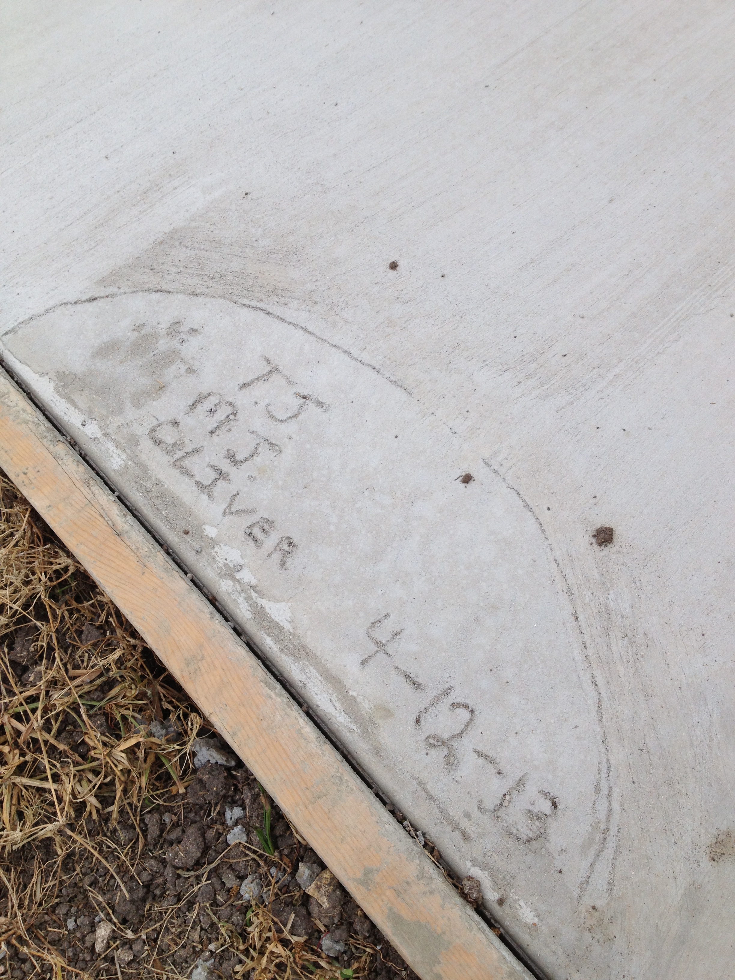 Michael was home the day they poured the concrete and wrote our initials and the date, and put Oliver’s paw print in it.