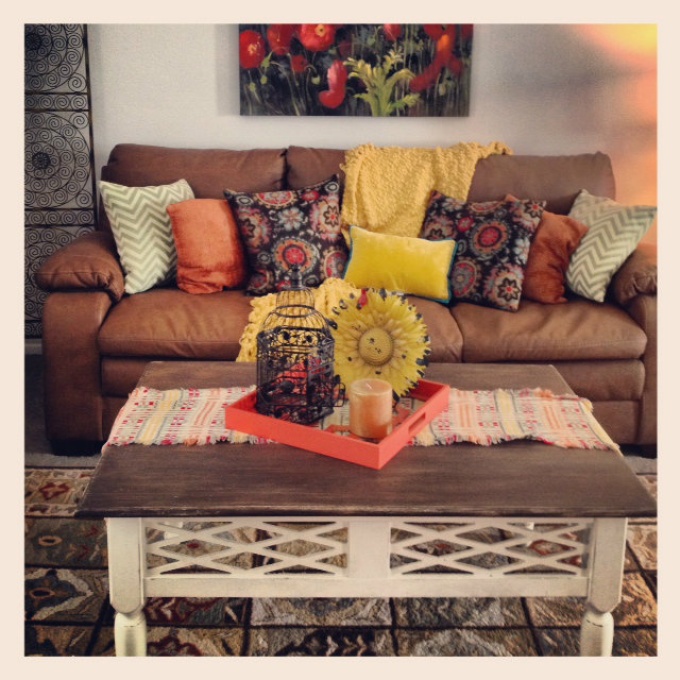 This was inspired by a pin on Pinterest. The hubs built it and I painted it. I love the fun splash of color it adds!